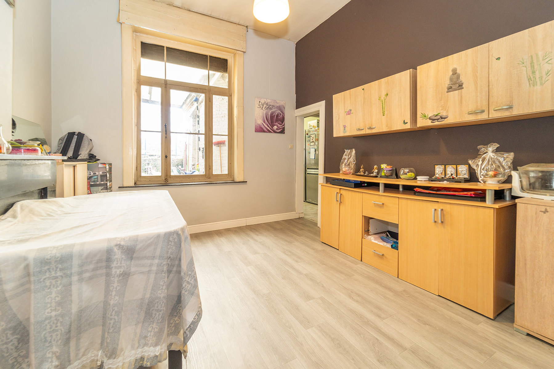 L’Agence Immobilière Elissa a le plaisir de vous présenter cette agréable maison située dans la rue Devant l’Aîte à Angleur. Entrez et découvrez un bel espace pour le hall d’entrée. Tournez à droite et entrez dans l’espace séjour avec ses châssis imposants apportant une belle luminosité dans les pièces de vie. Dirigez-vous le fond du bien et trouvez-y une cuisine semi-équipée. Sortez et bénéficiez d’un beau jardin de ville. Montez aux étages et vous y trouverez 4 belles chambres et un point d’eau. Parfaitement située à deux pas de la E25 et de la gare d’Angleur, chers amis investisseurs, venez découvrir cette maison idéale pour une colocation ou pour y habiter pour vous et votre famille. Contactez-nous pour plus d’informations. Offrez-vous le confort que vous méritez.