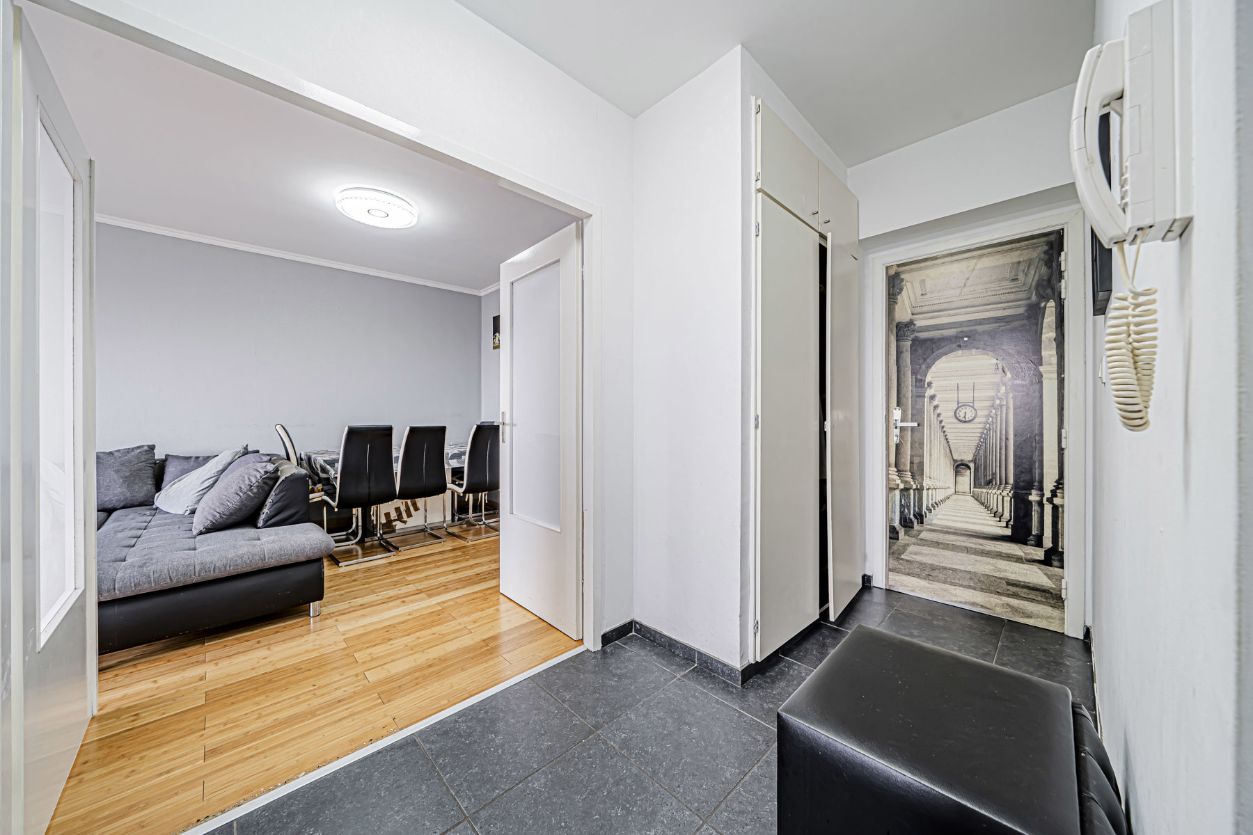 Entrez dans cet appartement bien agencé et découvrez un hall d’entrée accueillant. Dirigez-vous vers l’espace de vie lumineux, offrant un séjour confortable et convivial, ouvert sur la terrasse. L’appartement dispose également d’une cuisine fonctionnelle, idéale pour le quotidien.