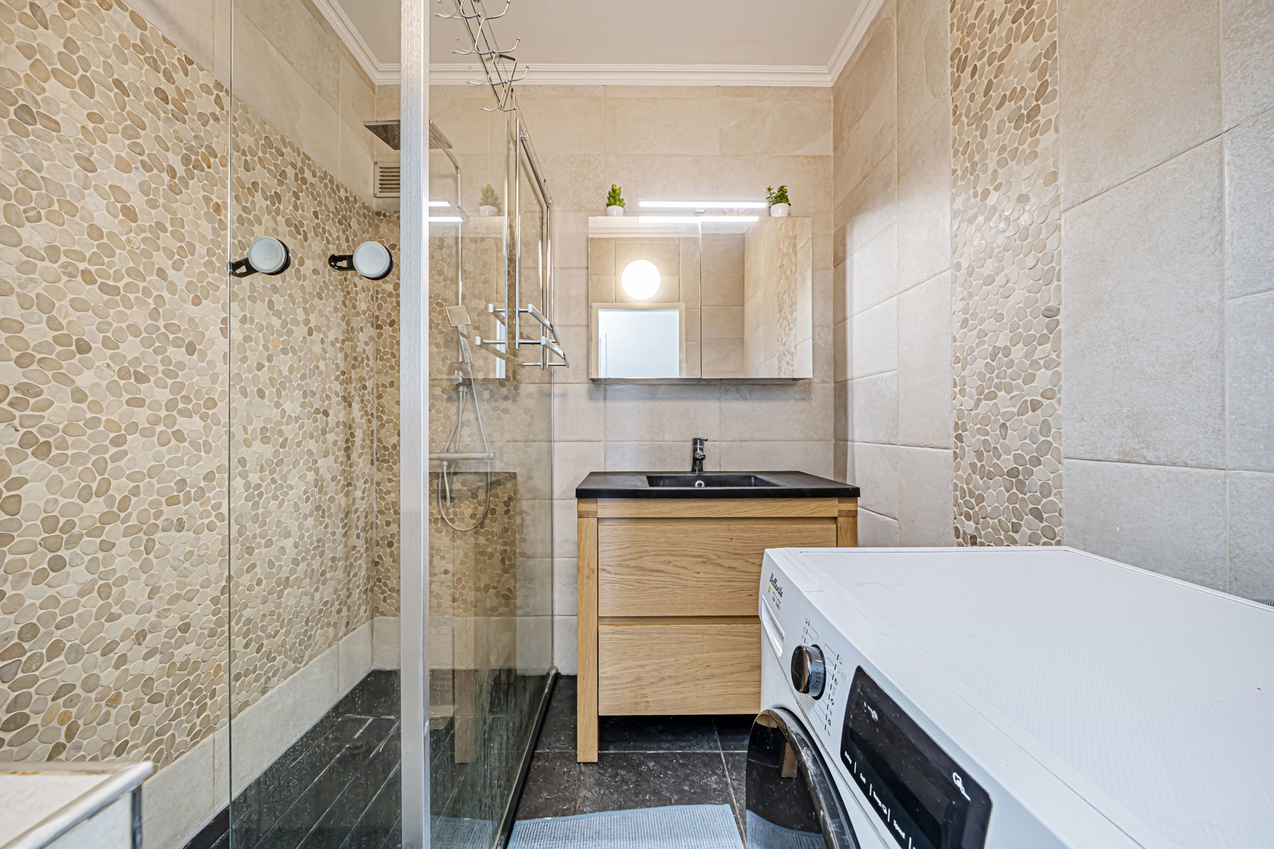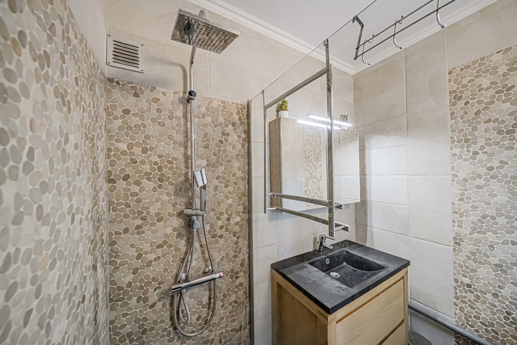 Vous trouverez également une salle de douche ainsi que deux chambres, offrant calme et confort, un WC indépendant.