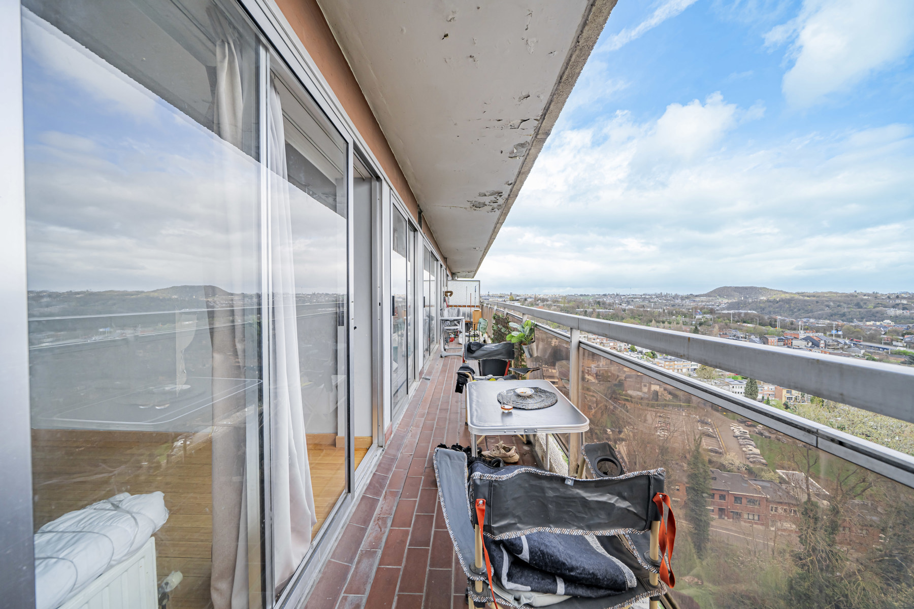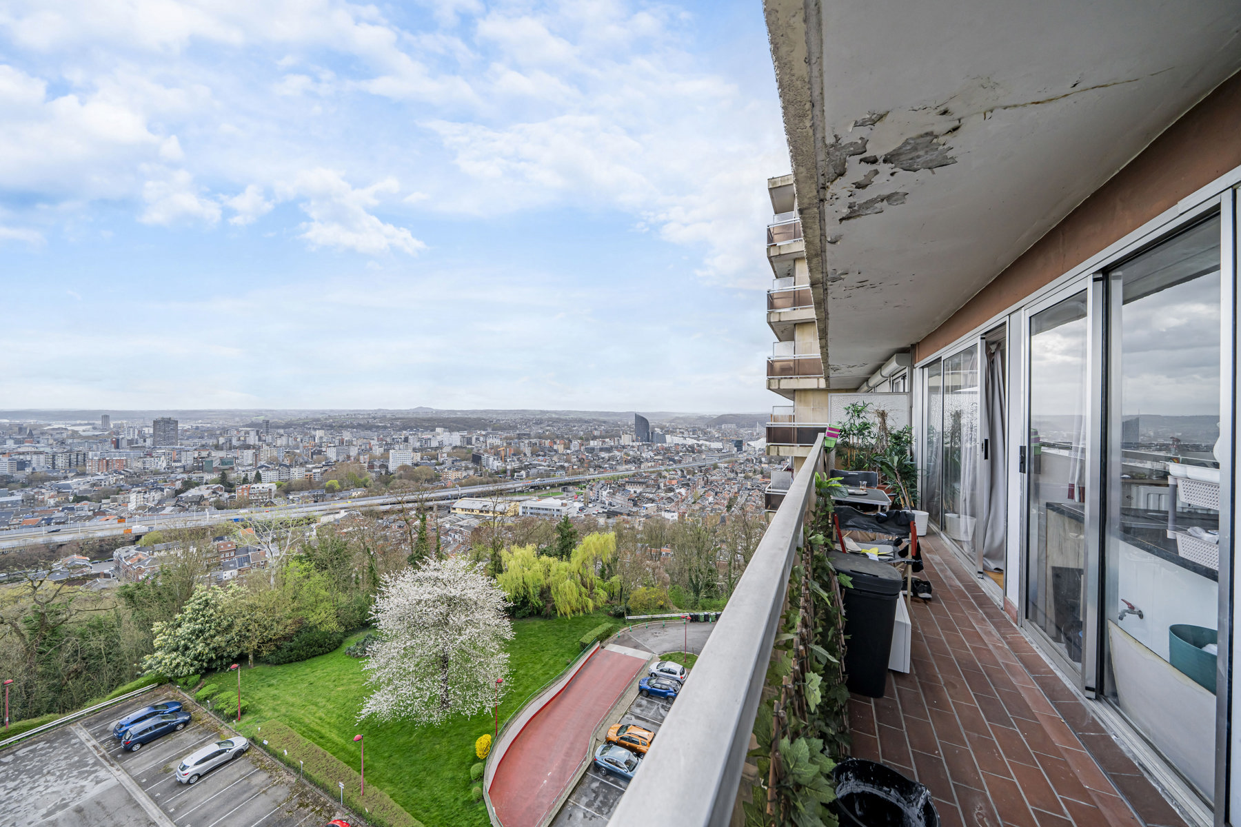 Situé au 9ᵉ étage de la copropriété, venez profiter d’un cadre de vie agréable et d’une belle luminosité, ainsi que d’une terrasse offrant une vue sur toute la ville de Liège.