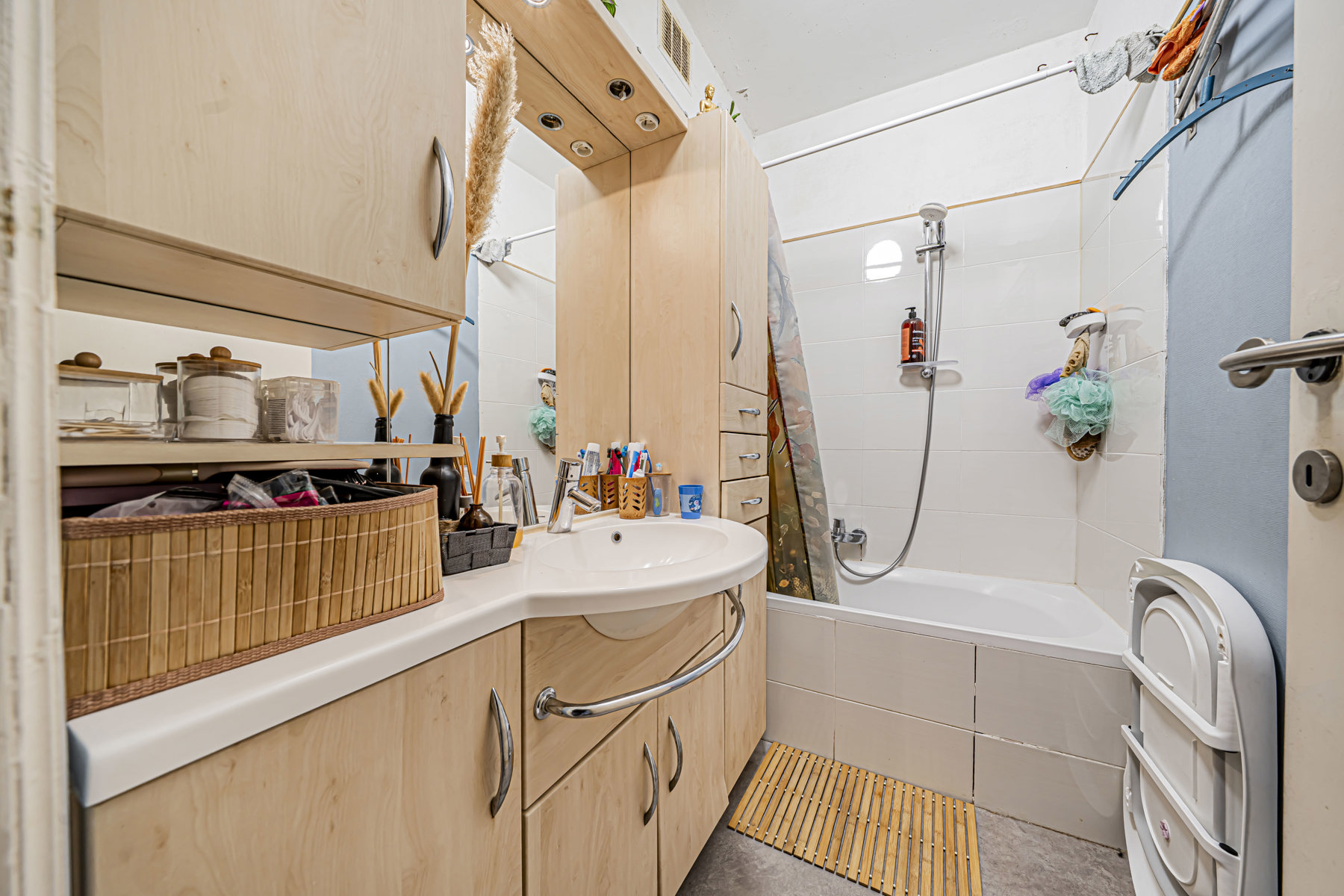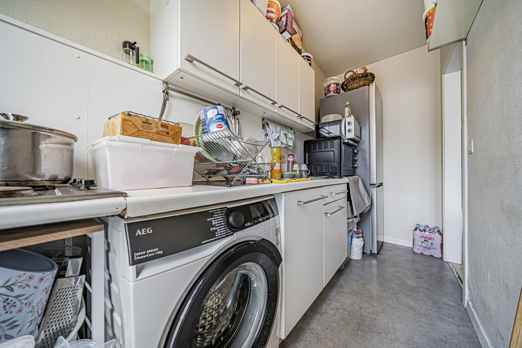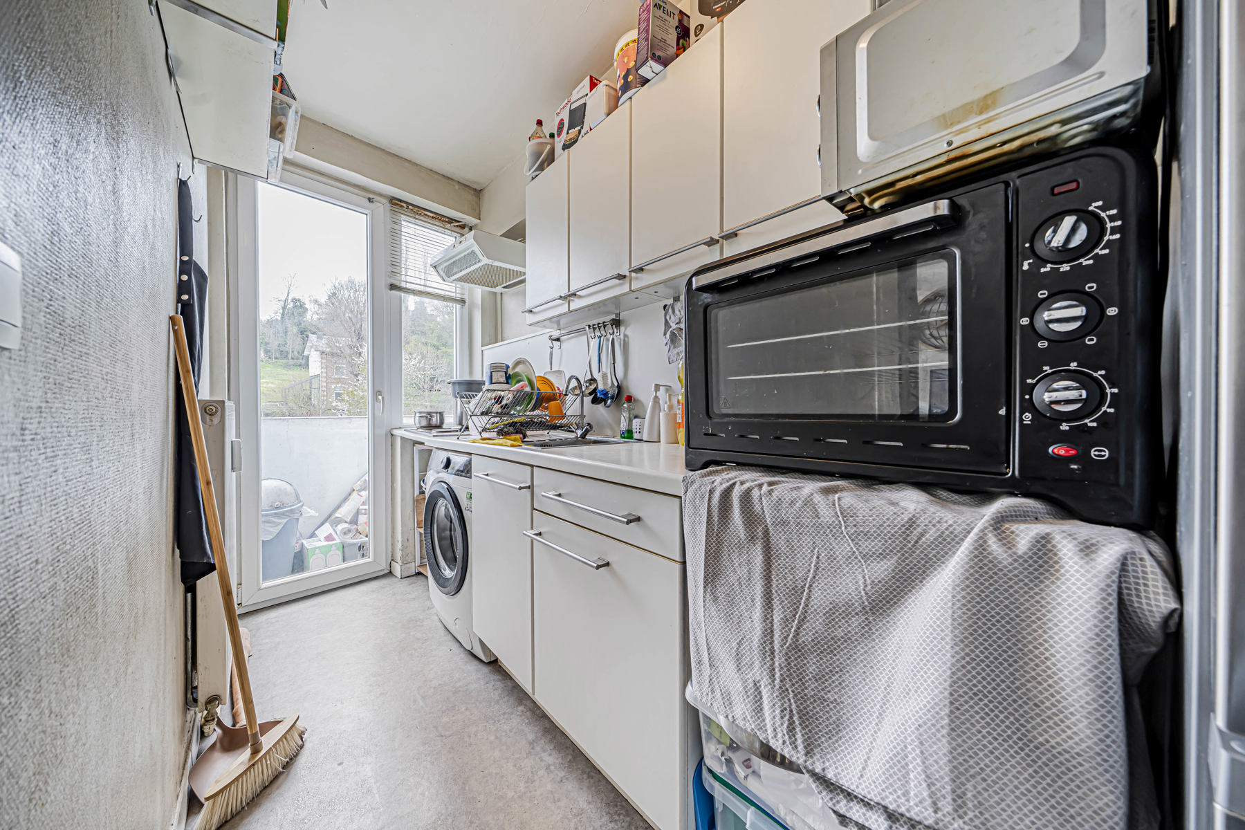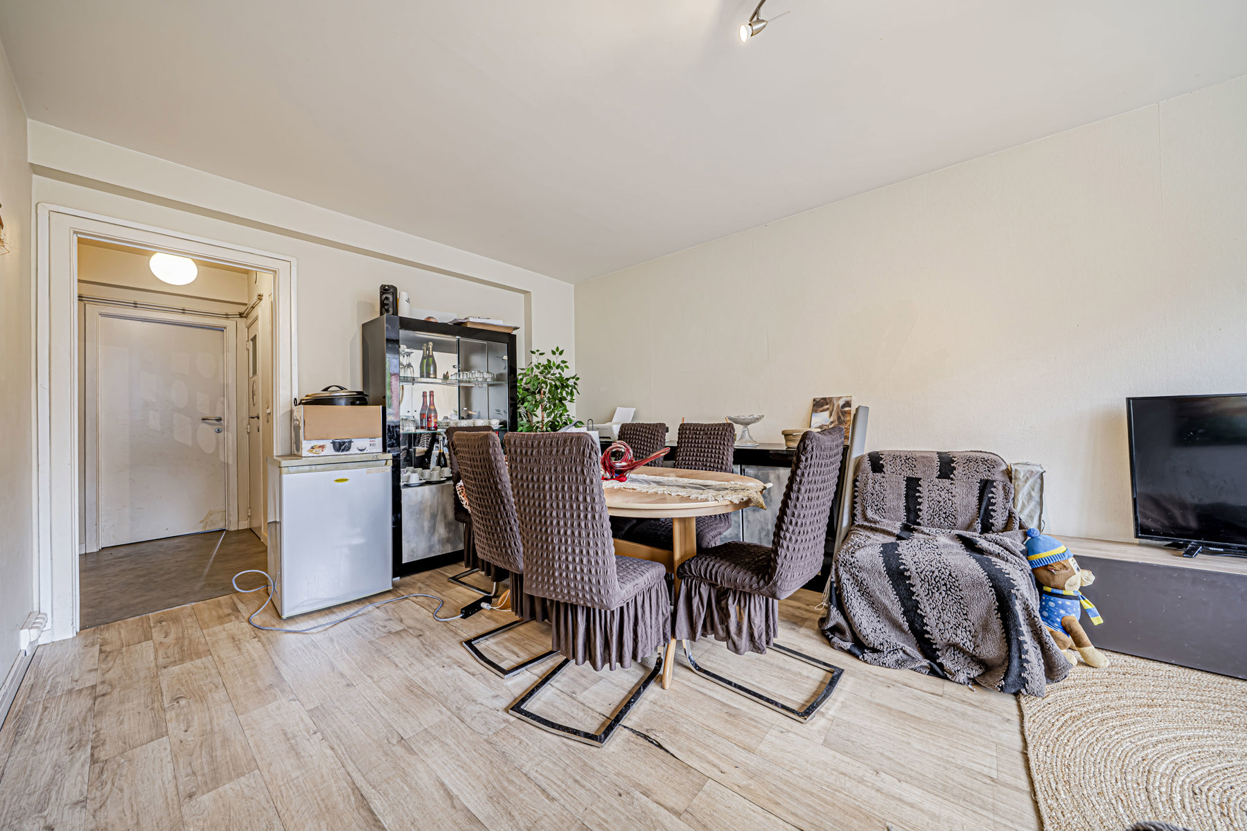 L’appartement se compose d’un hall d’entrée accueillant menant vers un espace de vie lumineux, comprenant un séjour convivial. La cuisine, fonctionnelle et adaptée au quotidien, offre un accès direct à la terrasse.